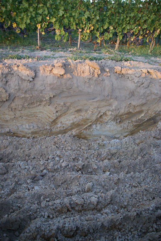 Les parcelles du Garde Champètre, L’Echange Sudrat, L’achat Cubilier, Les vieux Merlots sont de fines graves mindéliennes datant de l’ère quaternaire entre -700 000 et -220 000. Ces parcelles d’orientation sud le long du ruisseau du mauvais temps (comme le « Château » Le Pin) sont « des terroirs viticoles de qualité » 2. L’assemblage du vin du château La Croix de Gay puisent dans ces terroirs son charme immédiat et son accessibilité à tout âge du vieillissement.